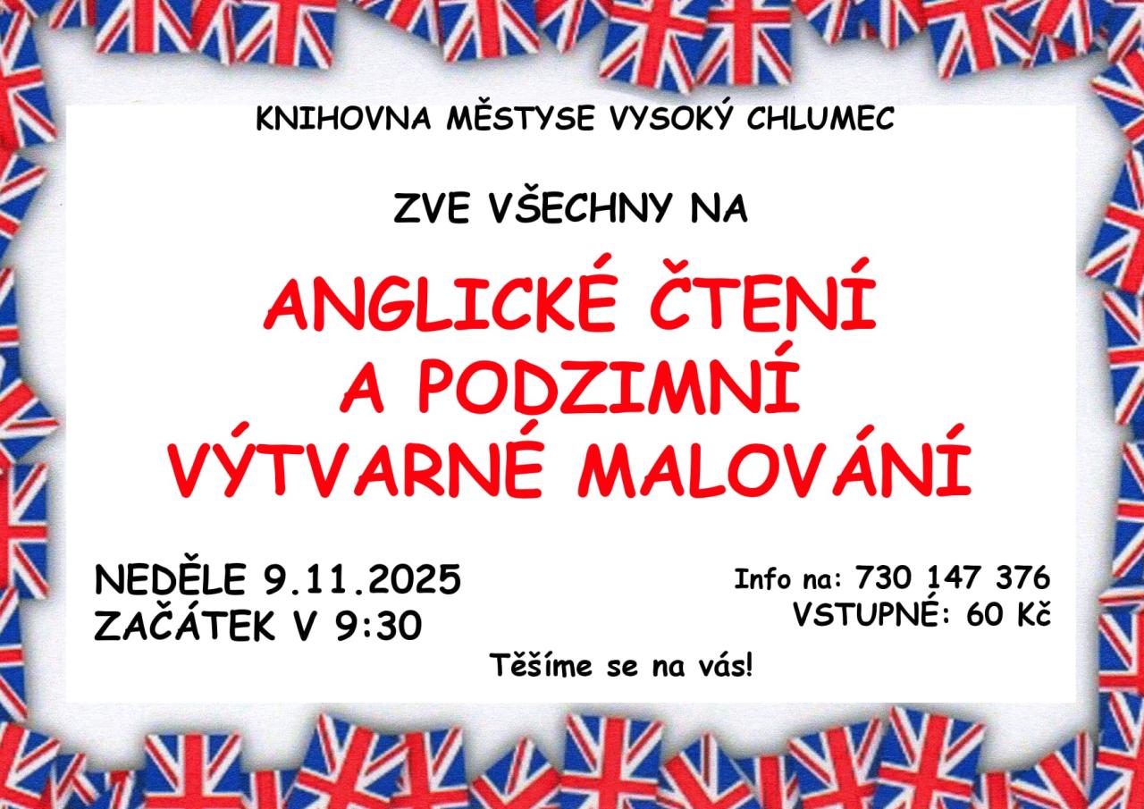 Knihovna městyse Vysoký Chlumec zve všechny malé i velké na dopoledne plné angličtiny, příběhů a malování!