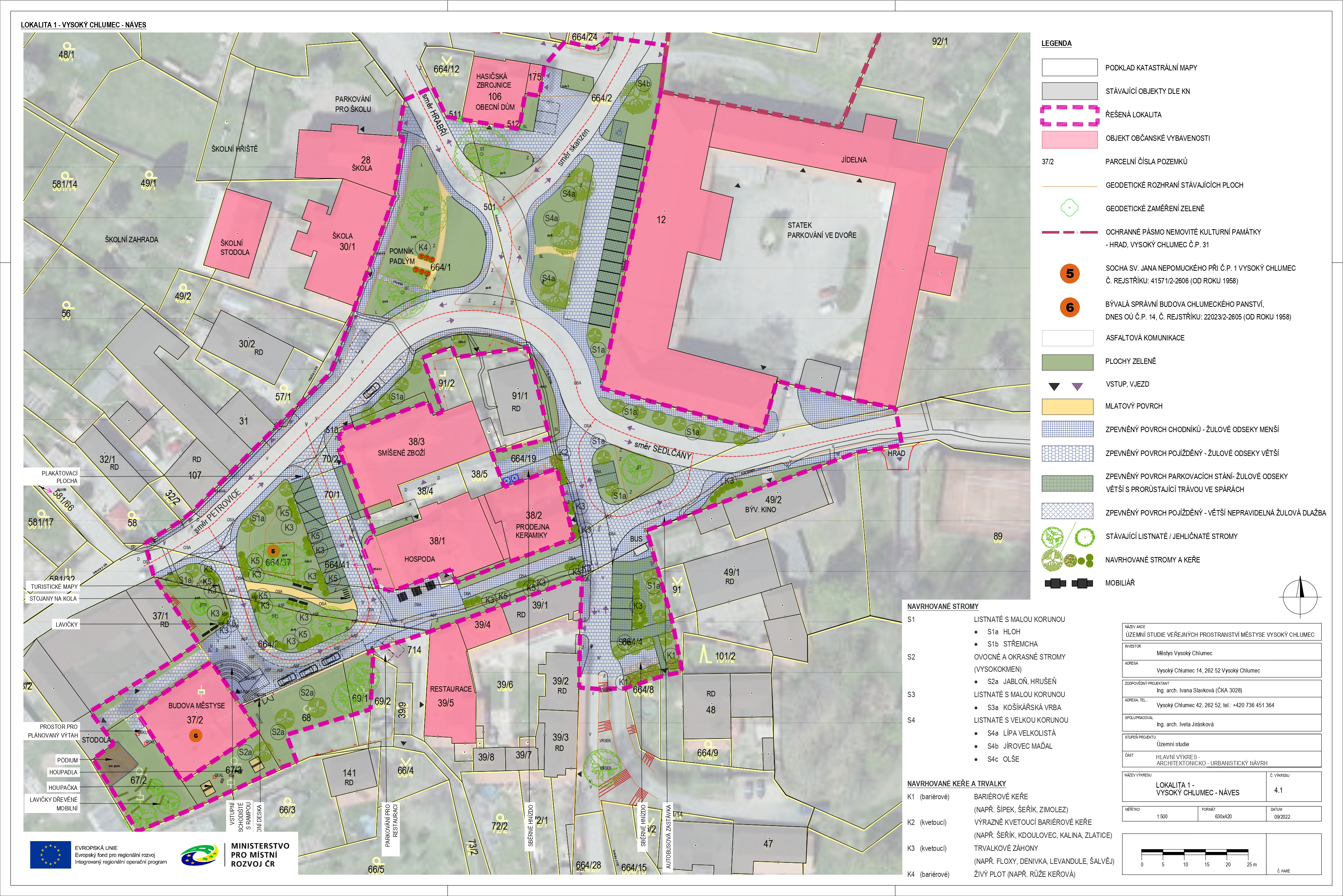V rámci projektu bude řešeno 6 lokalit v městysi Vysoký Chlumec, z toho 4 přímo ve Vysokém Chlumci a po jedné v části Pořešice a Vápenice.